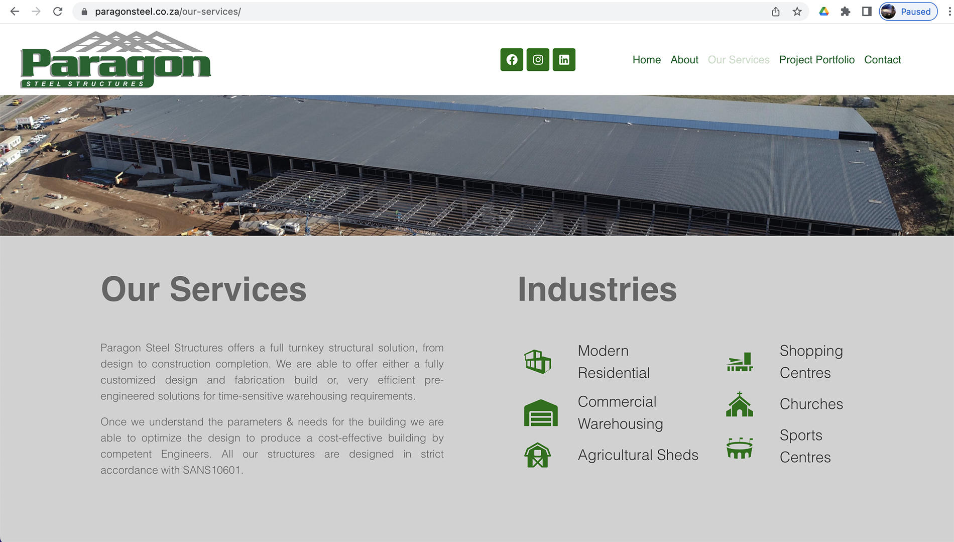 Paragon Steel Structures commissioned a new corporate website to showcase its vast portfolio of structural steel work over the past 4 decades.